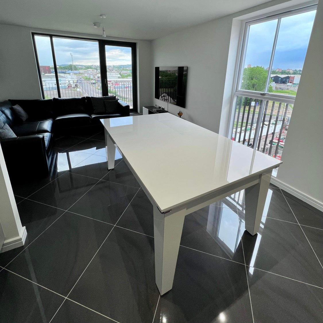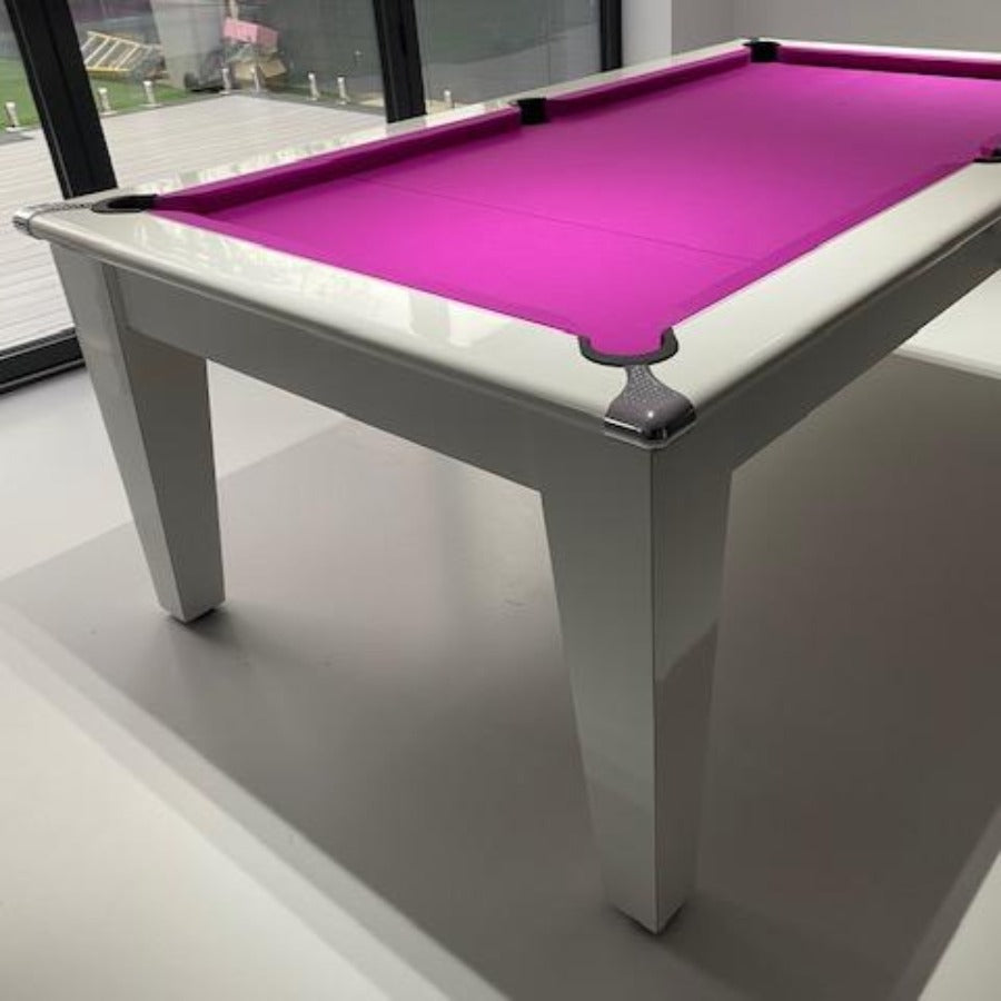 The Gloss White Gatley Classic is a contemporary, tapered leg, stylish design made for modern interiors. It is perfect for entertaining friends and family at home. Host a dinner party and then relax, fold back the cover and play pro quality pool.